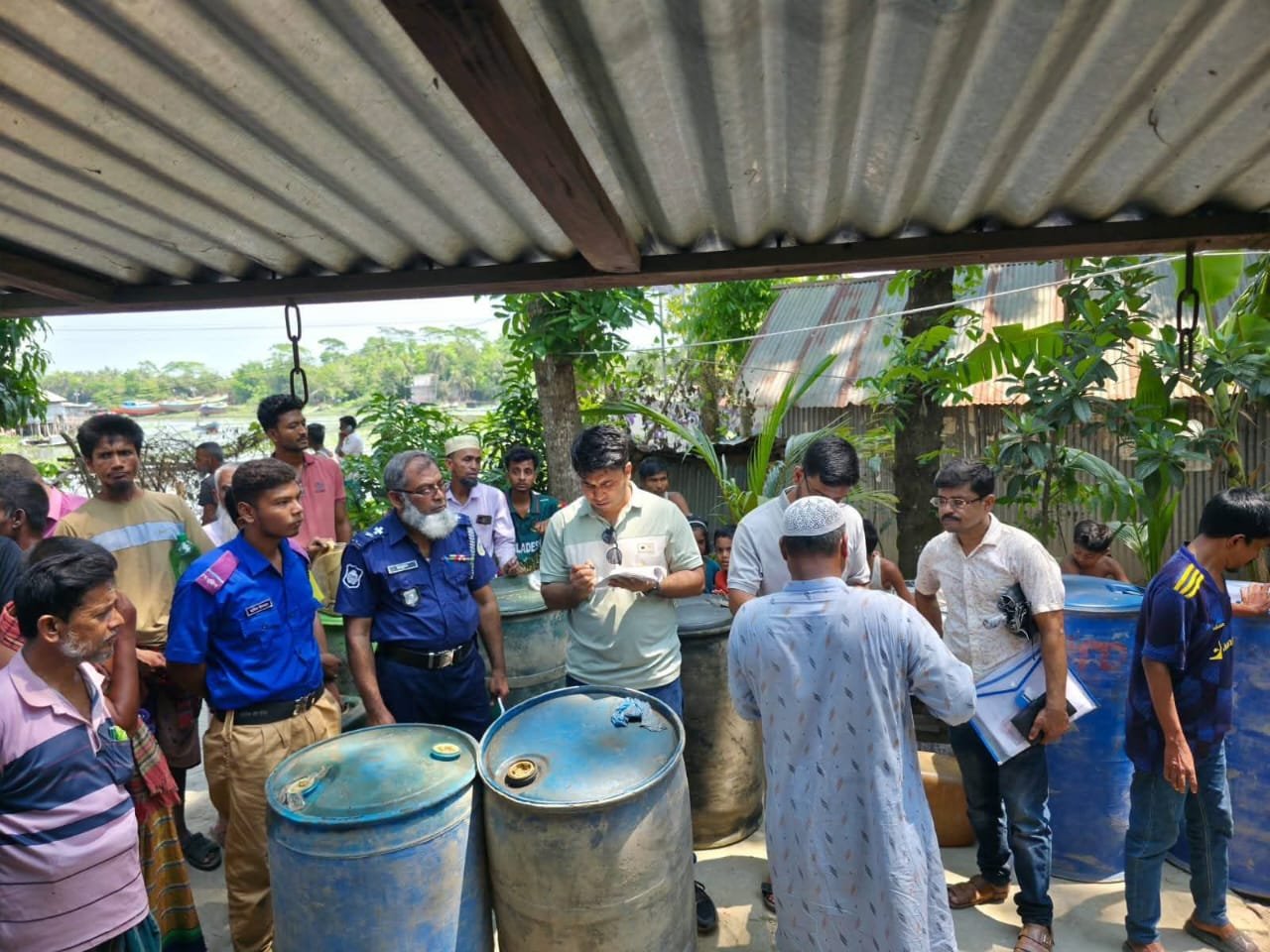 ভাণ্ডারিয়ায় অবৈধভাবে মজুদ করা ১,৪৫৮ লিটার জ্বালানি তেল জব্দ, ব্যবসায়ীকে জরিমানা