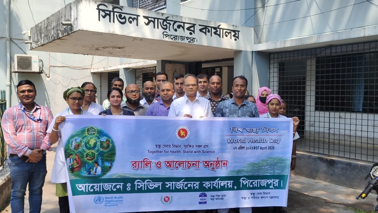 স্বাস্থ্য সেবায় বিজ্ঞান, সুরক্ষিত সকল প্রাণ’ প্রতিপাদ্যকে সামনে রেখে পিরোজপুরে যথাযোগ্য মর্যাদায় বিশ্ব স্বাস্থ্য দিবস ২০২৬ পালিত হয়েছে। দিবসটি উপলক্ষে