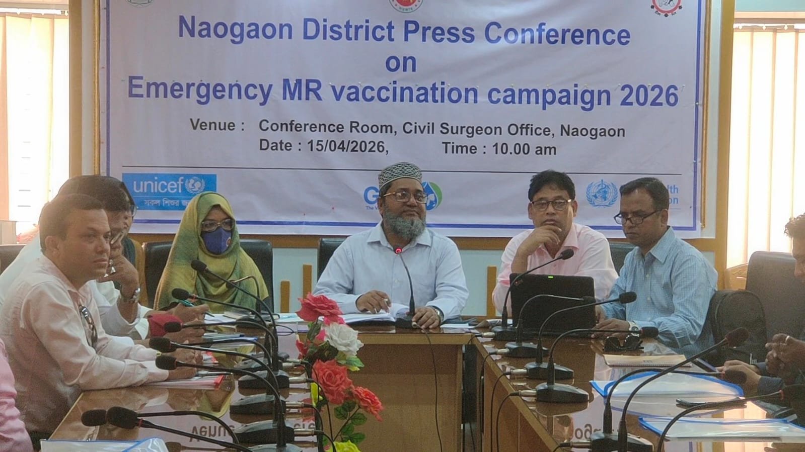 নওগাঁ জেলায় হাম ও রুবেলা প্রতিরোধে ব্যাপক টিকাদান কর্মসূচি উপলক্ষে জরুরি সংবাদ সম্মেলন অনুষ্ঠিত হয়েছে। বুধবার (১৫ এপ্রিল) সকাল ১০টায়